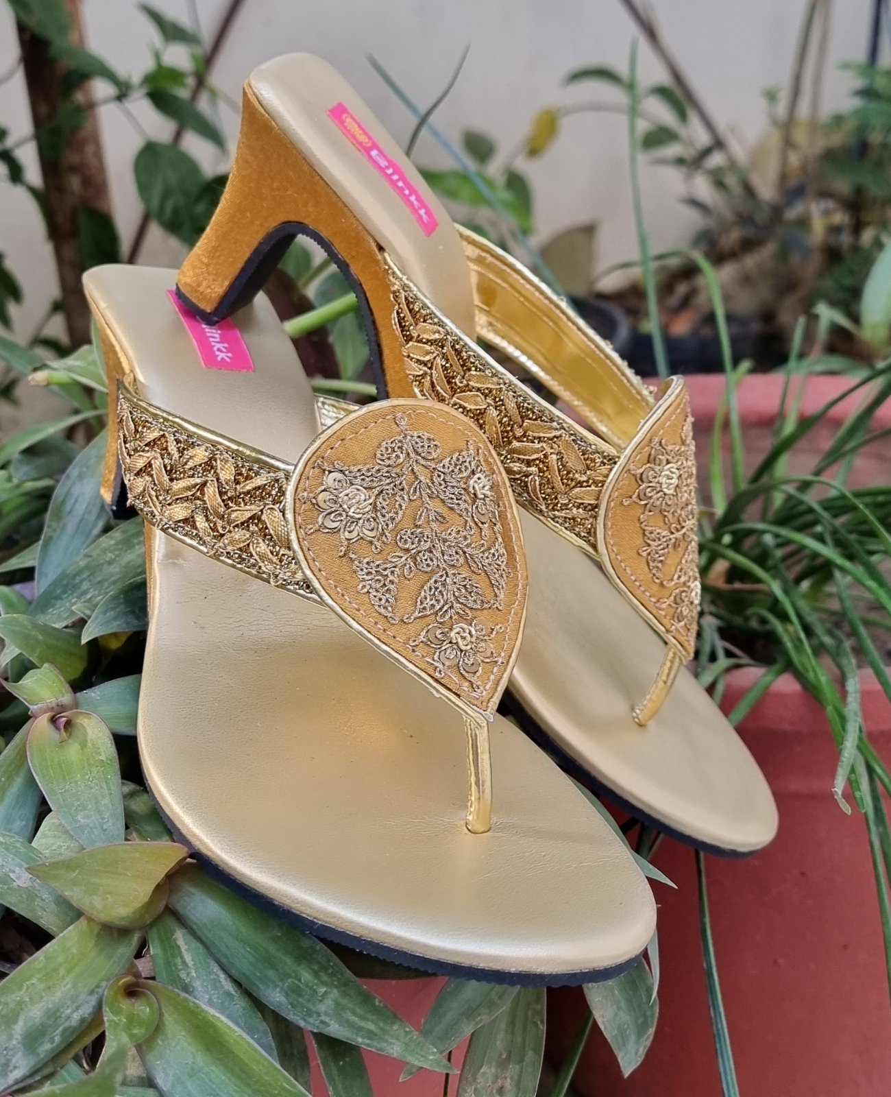 Heels:- Approx 2 inches, Gold Gaji Silk
