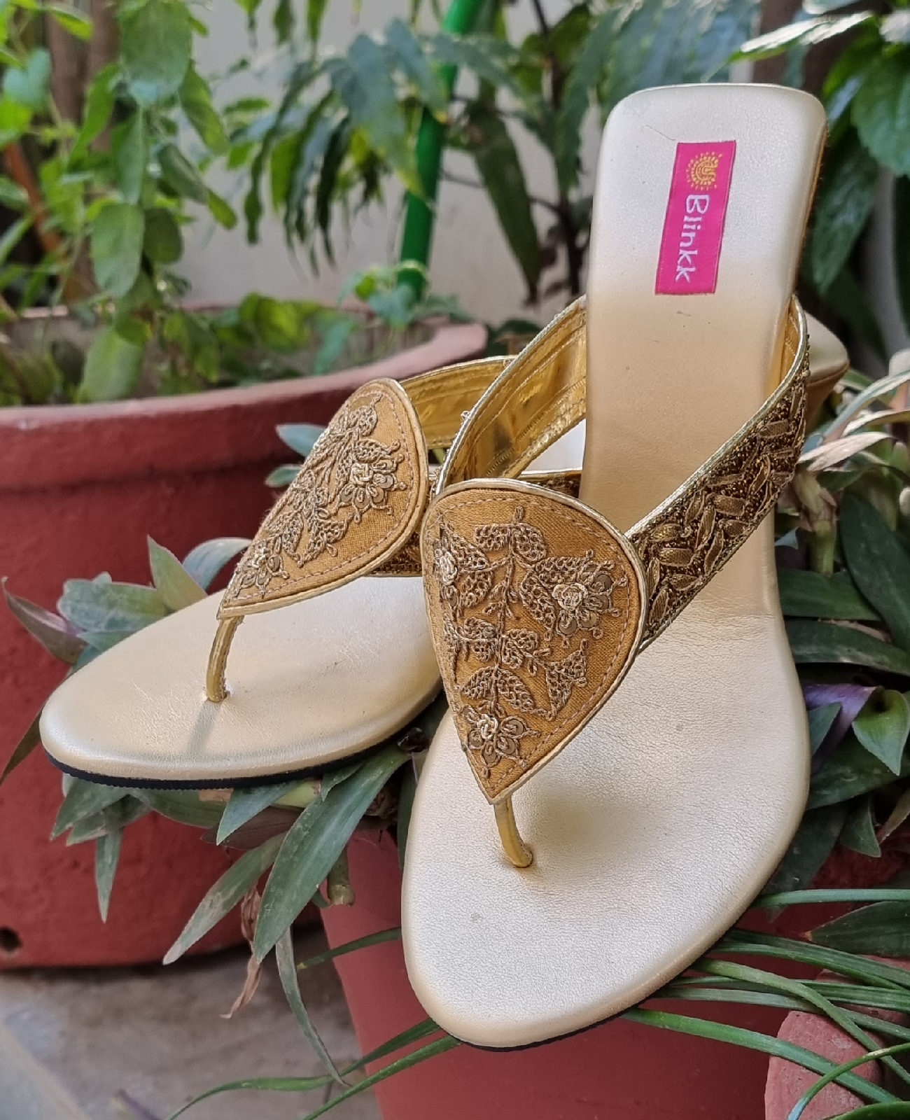 Wardrobe Essential Pair! A pair of easy going and stylish box heeled sandals customized in gotapatti and marodi embroidery. Pair them with your anarkali or kurta set for a stylish appeal.