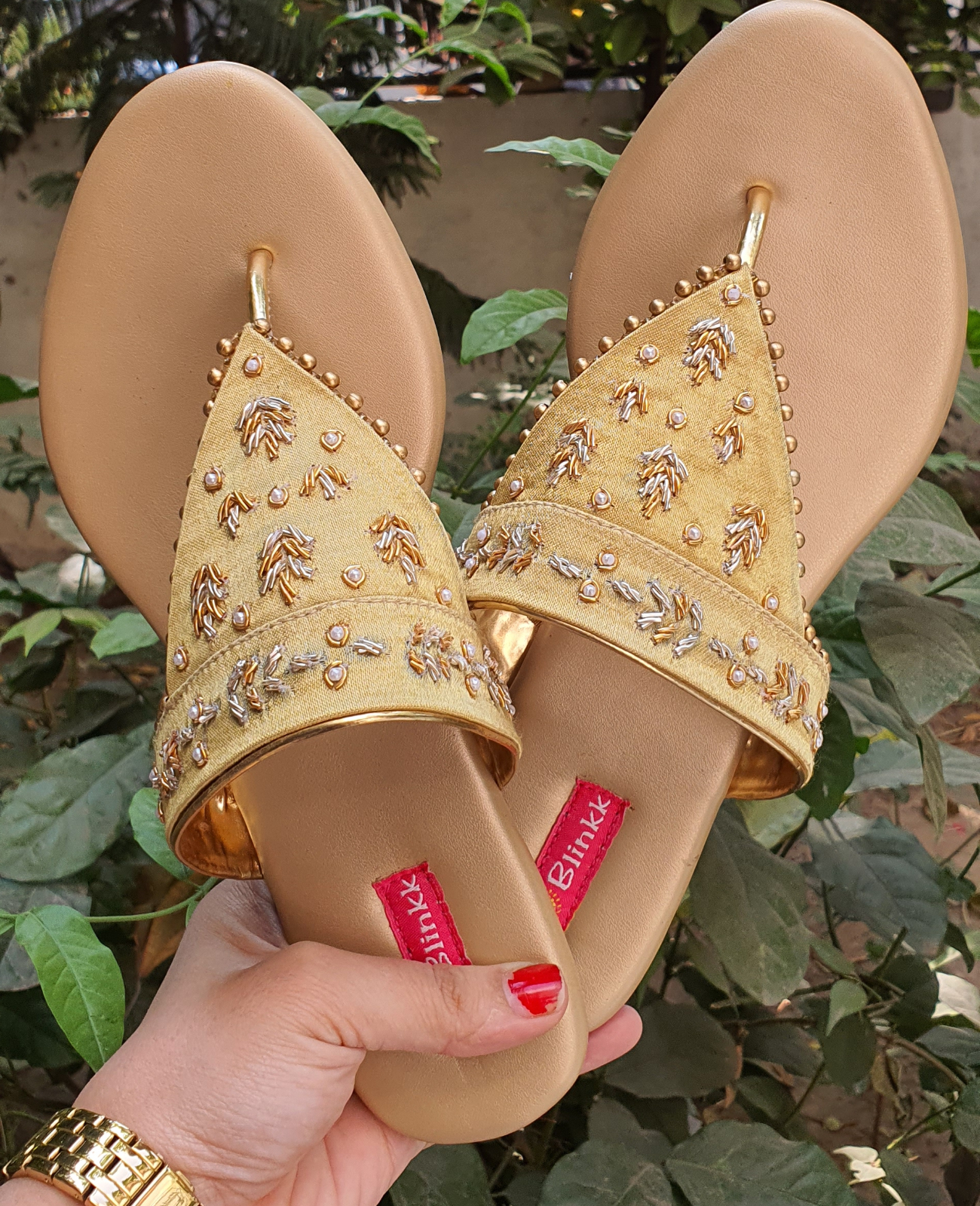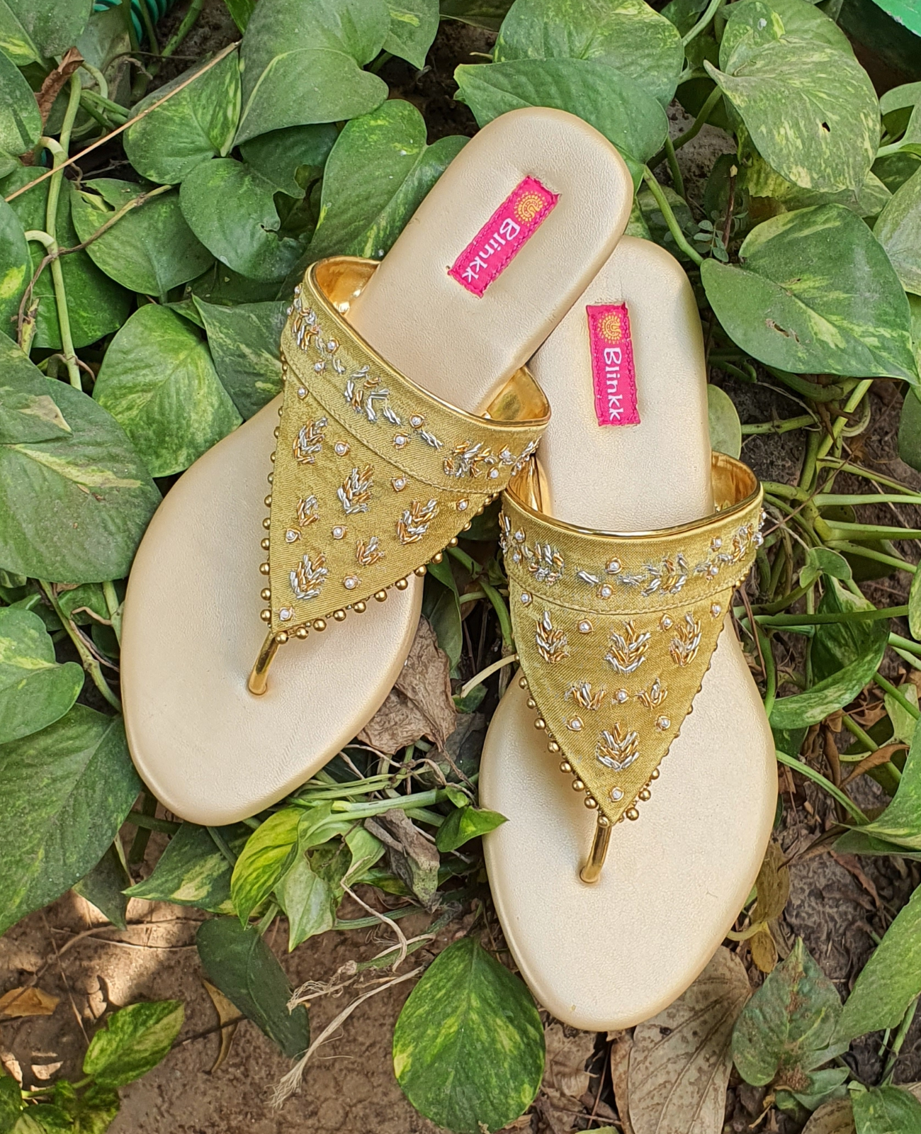 Exquisitely handcrafted pair of ethnic flats customized in zardosi embroidery. Style them with your tunics for effortless charm and comfort.
