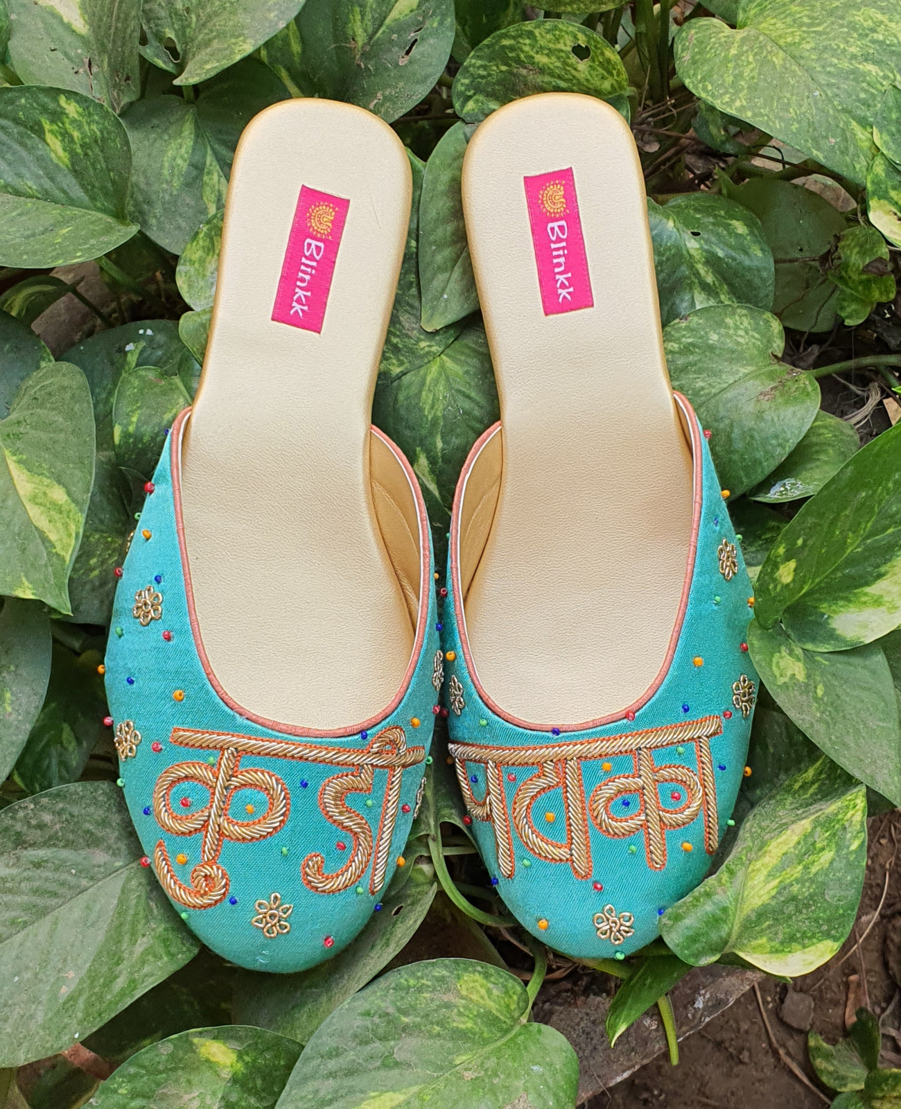 Stylish Kudi Pataka Slip On Juttis in Pastel Blue