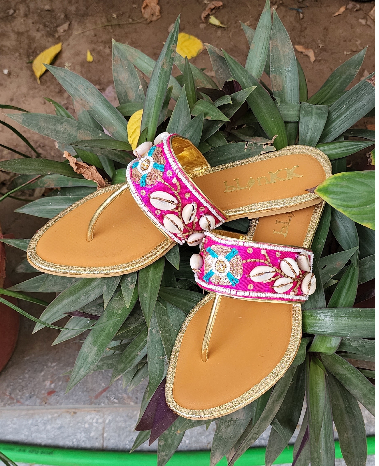 A pair of boho shells flats with some sequence work in pink. A perfect pair of flats for that summer vibes.
