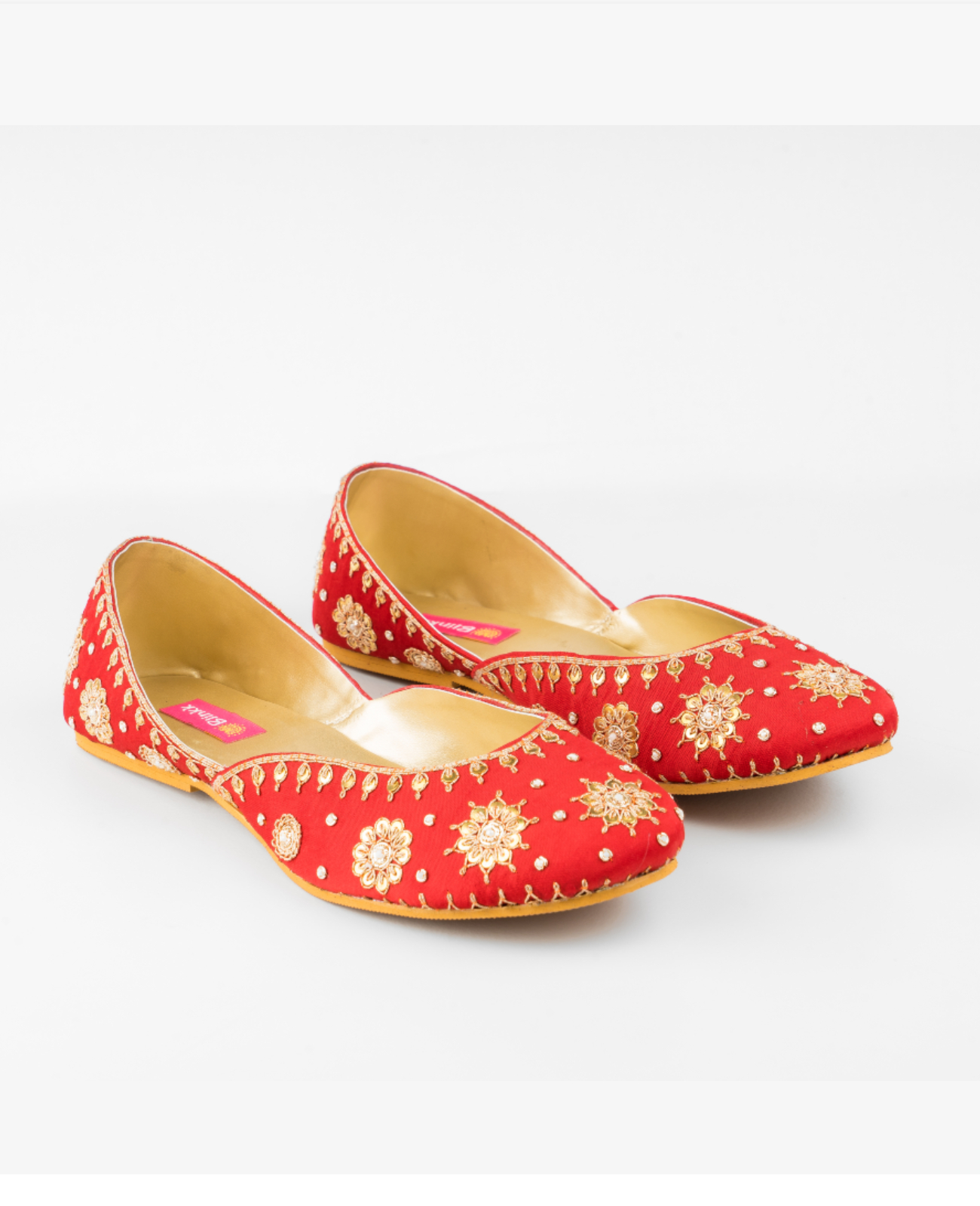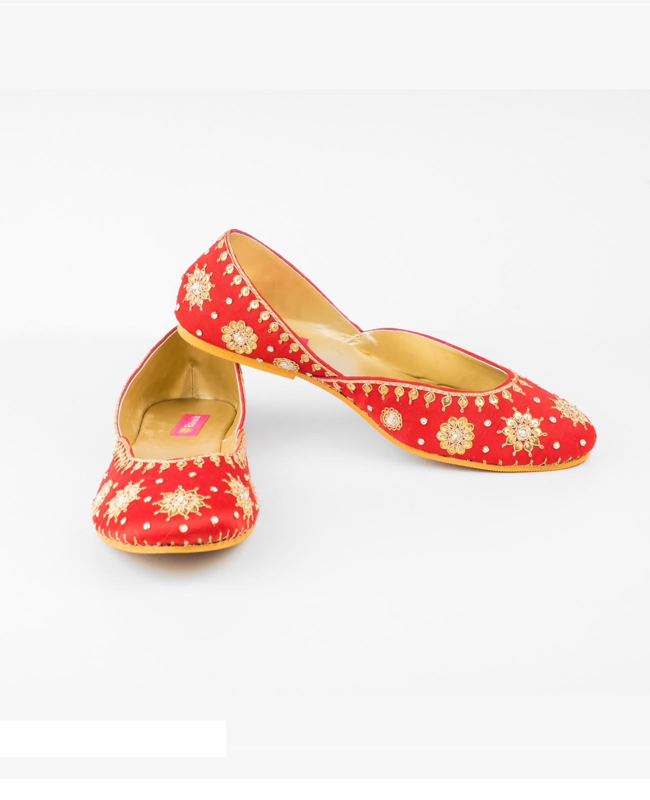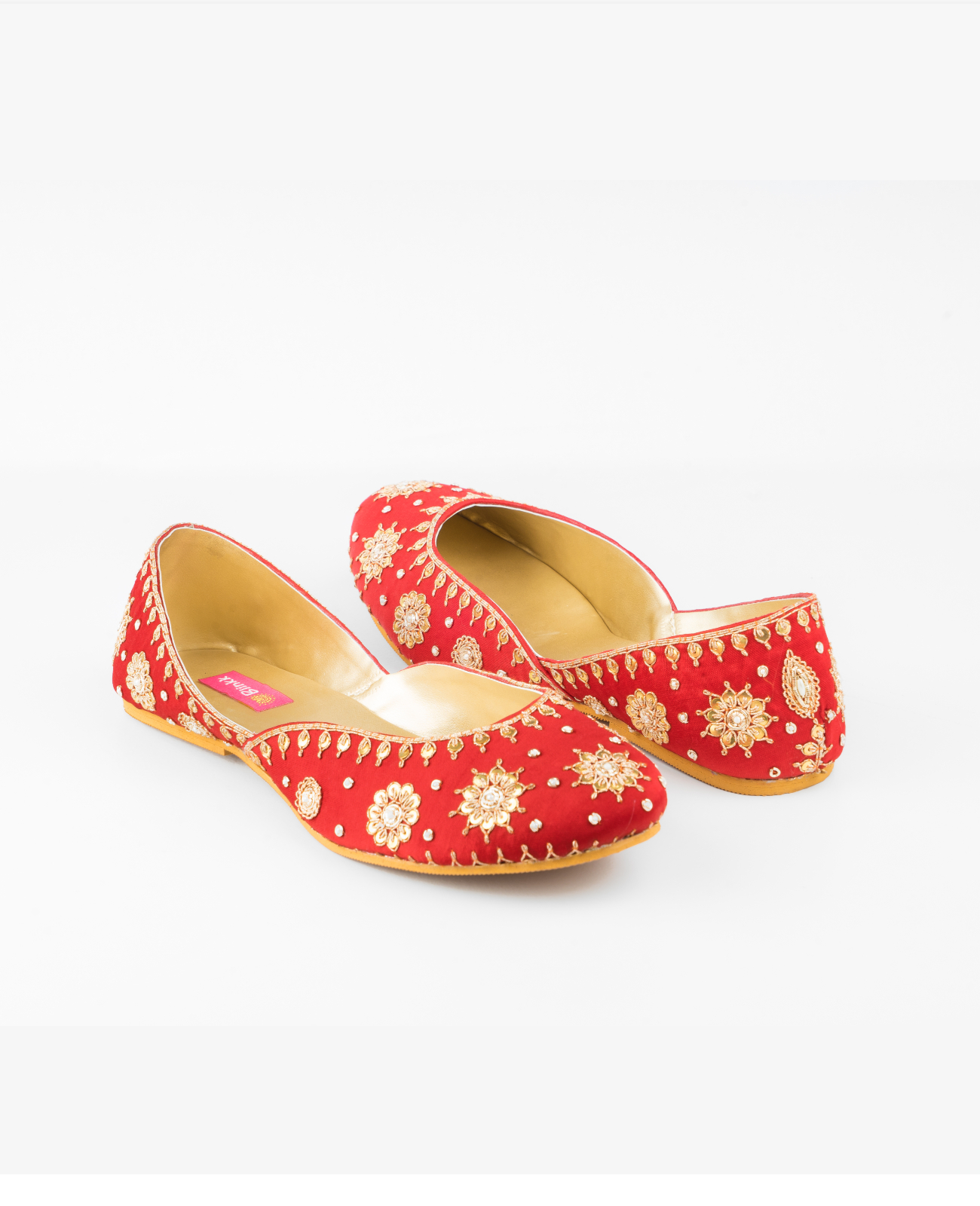 A royal pair of juttis customized in intricate marodi and sequence work. Style them with your gorgeous ensemble to add touch of elegance.