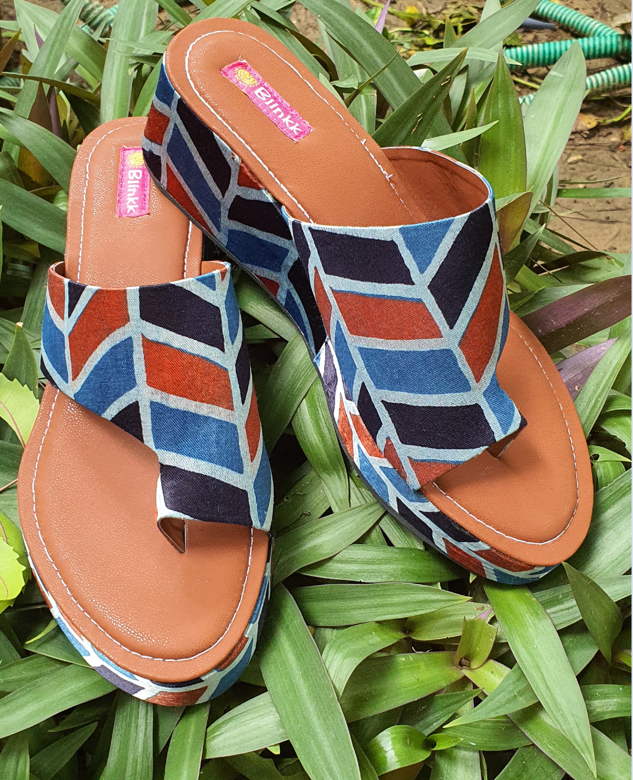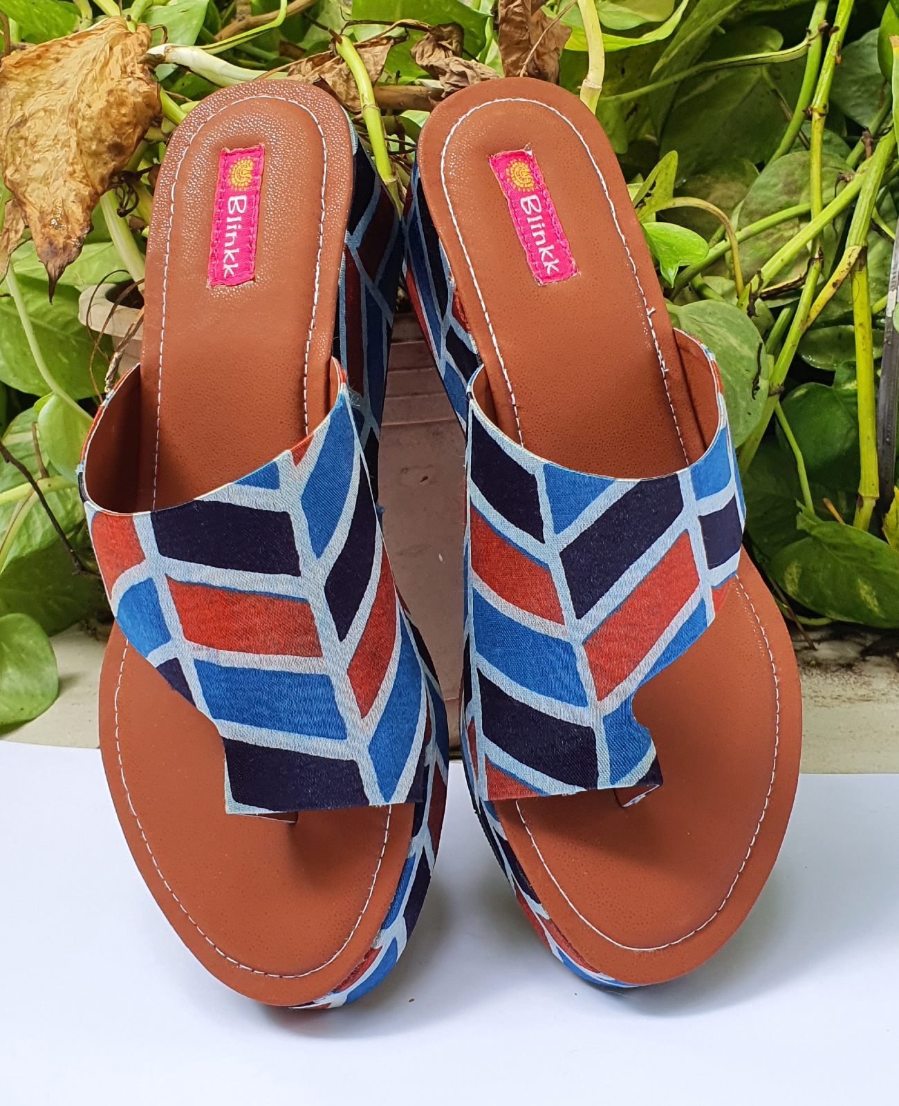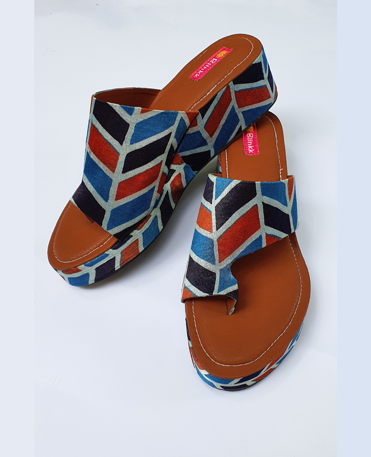 A pair of platform heels designed in colorblock gaji silk. Pair it with denims for that perfect look.