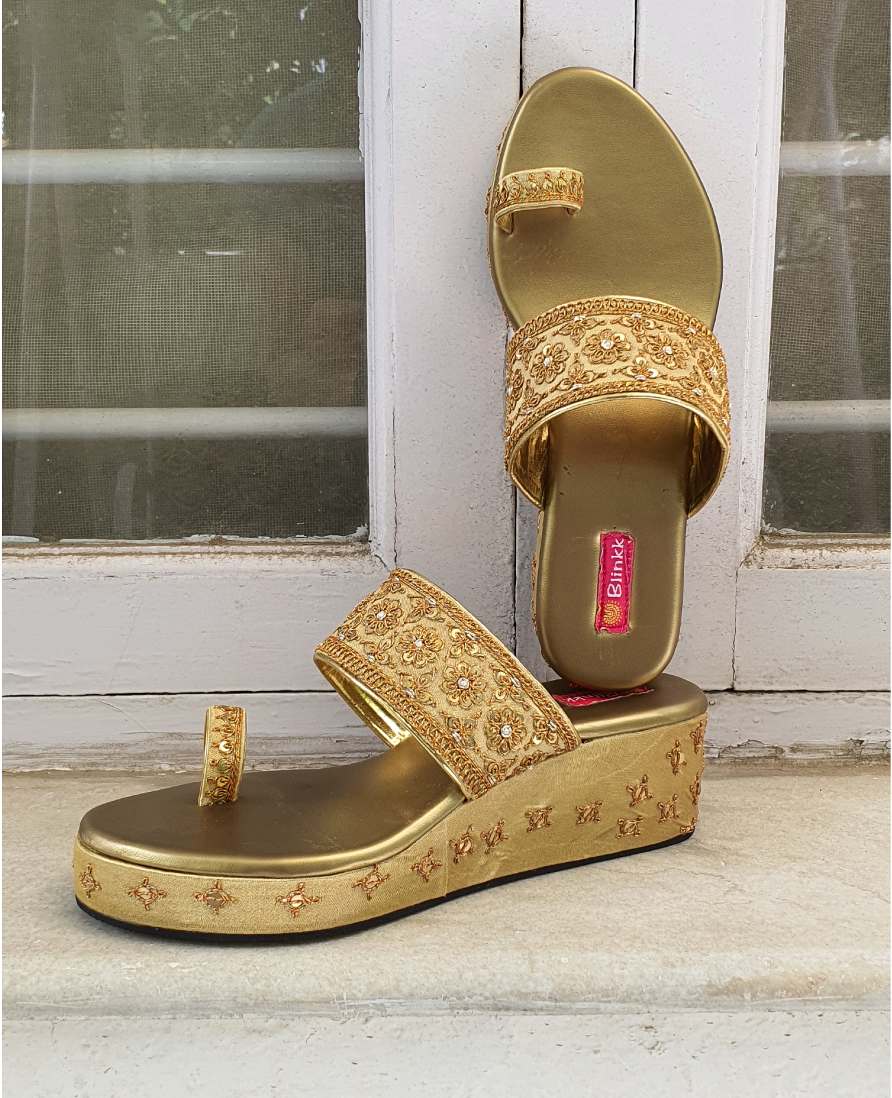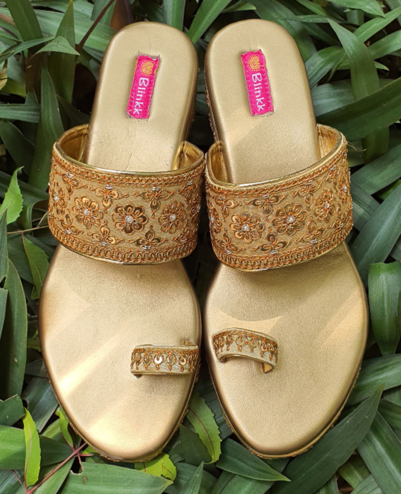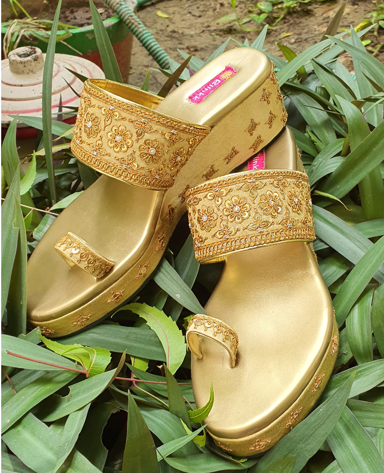 A pair of platforms designed with marodi hand embroidered details. Pair it with a saree, lehenga or kurta-pants set for a royal look.
