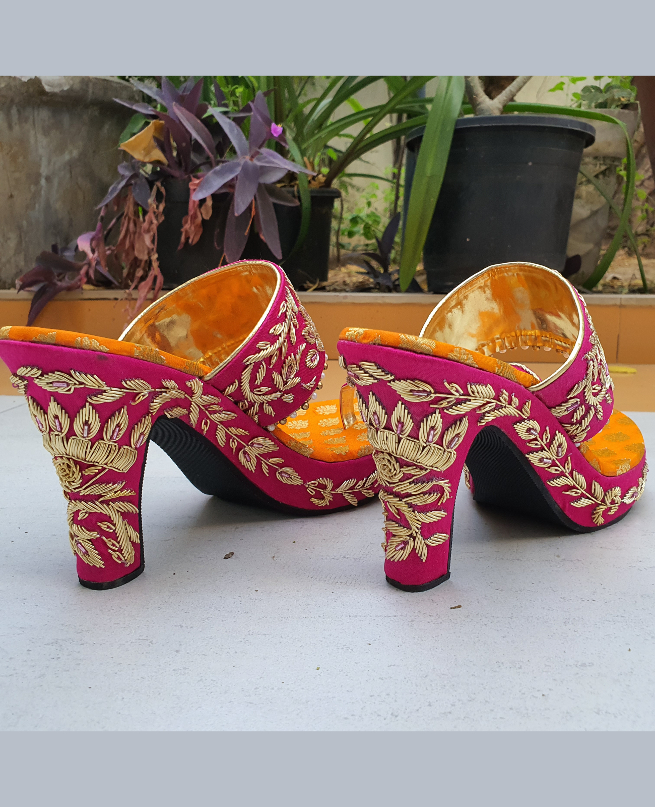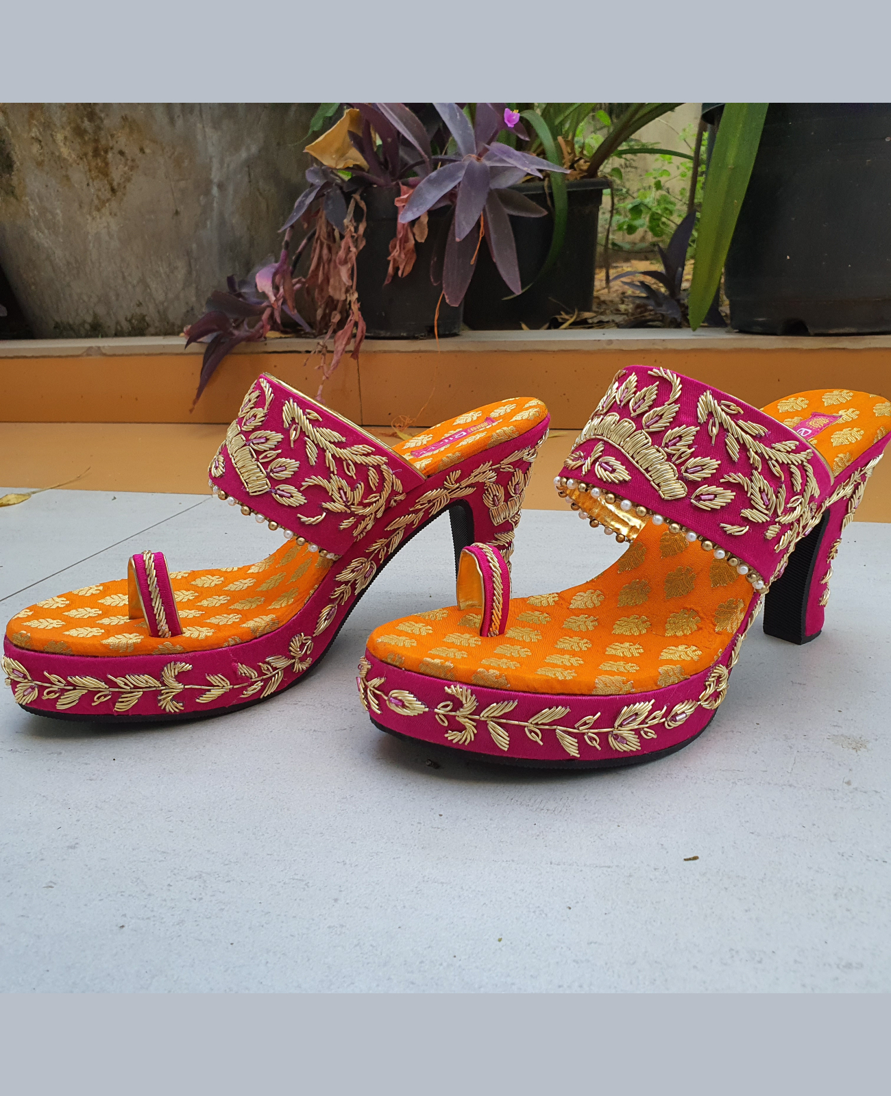 Pink and Orange Brocade Zardosi Stilettos