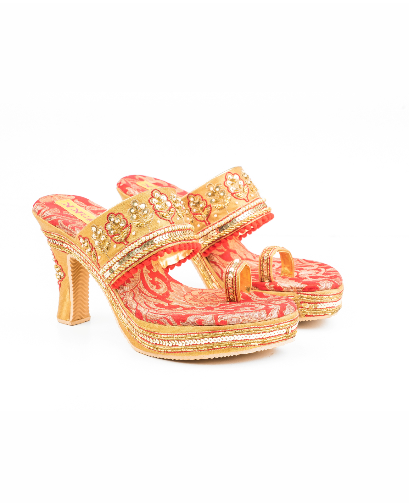 Red and Golden Bridal Zardosi Pearl Stilettos