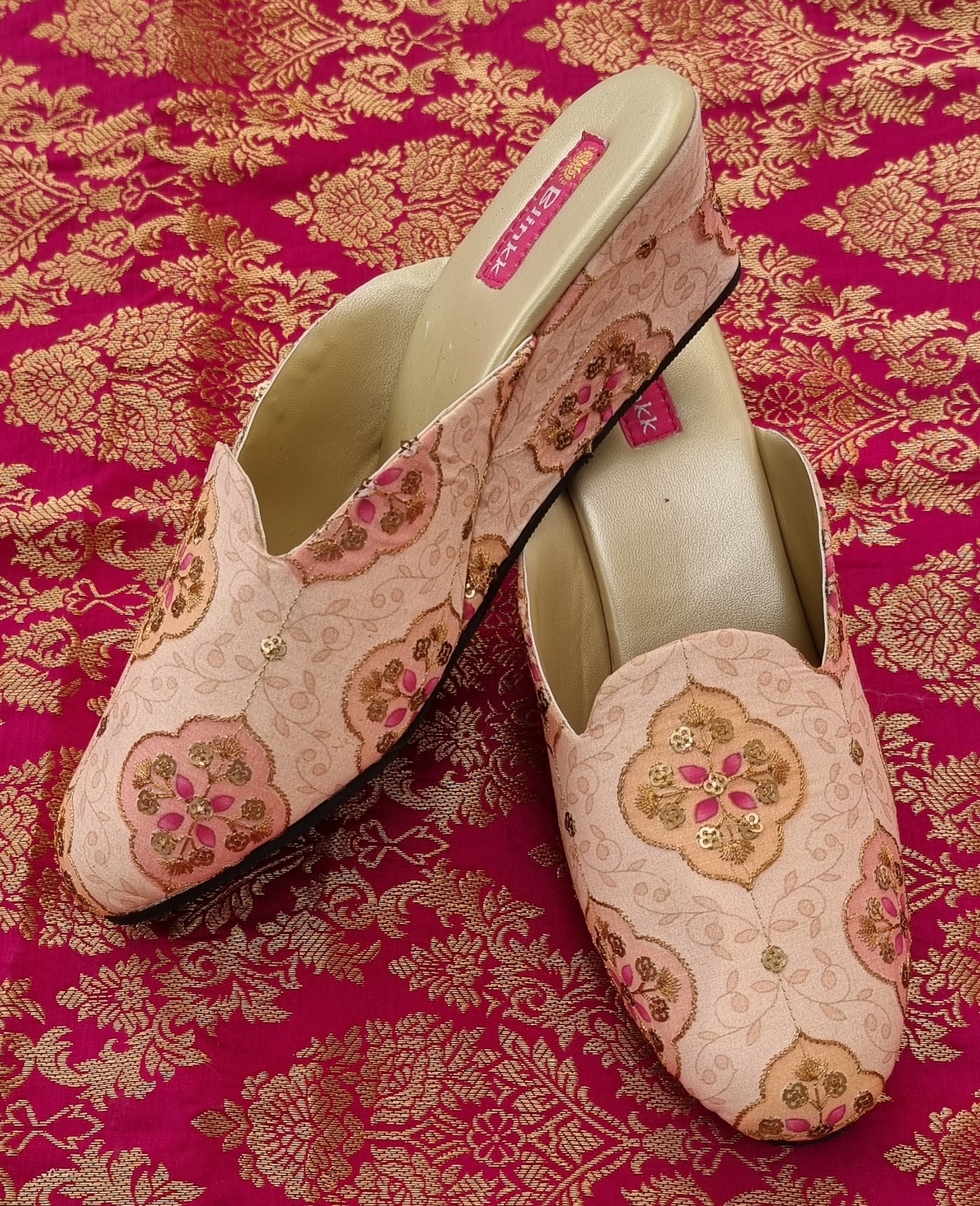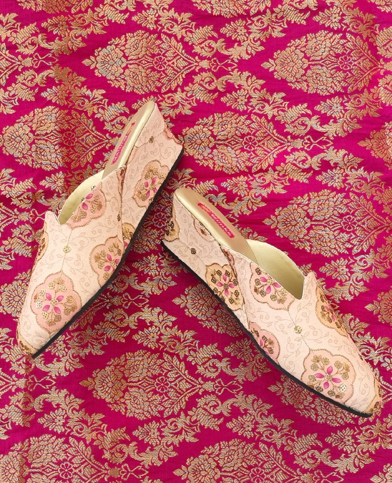 Minimal embroidered pair of slip on mojadis with beautiful sequence work. Add this pair to your wardrobe for that perfect look.